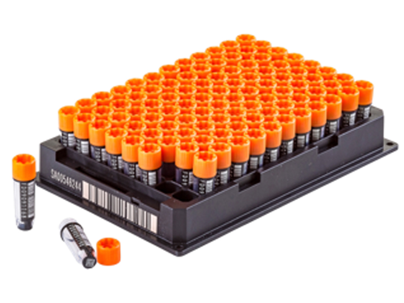 - Permanently laser etched 2D code on base, 1D linear barcode and human readable number on the side, ensuring a permanent link between sample and data