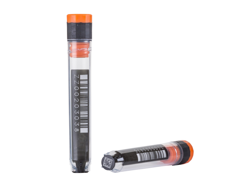 Each tube features a permanent 2D code laser etched in high contrast on the tube base, a permanent 1D linear barcode and human-readable number laser etched in high-contrast on the tube side. All three codes are identical and auditing processes guarantee all three codes match; standard 2D coding option is black on white.