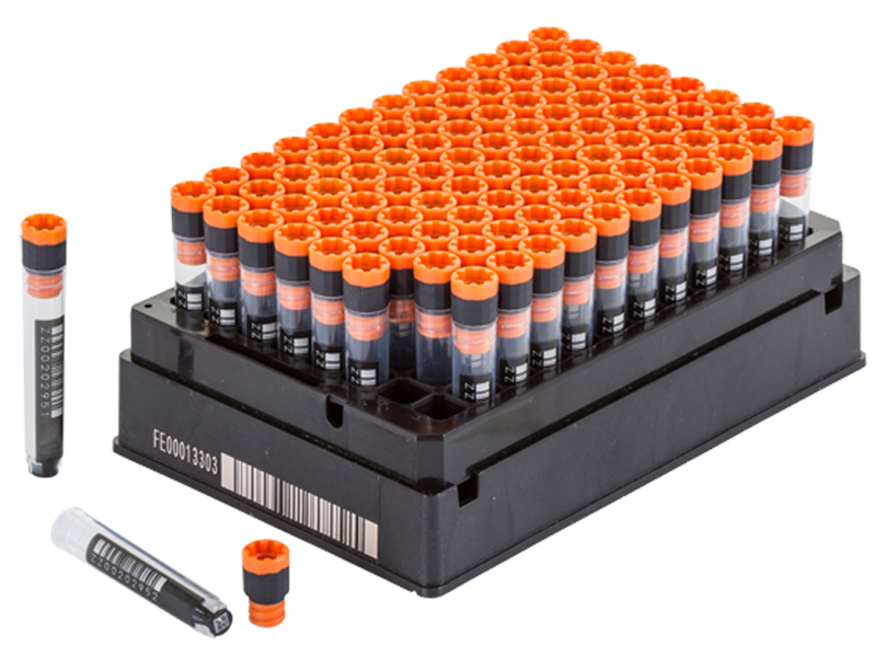 - Permanently laser etched 2D code on base, 1D linear barcode and human readable number on the side, ensuring a permanent link between sample and data