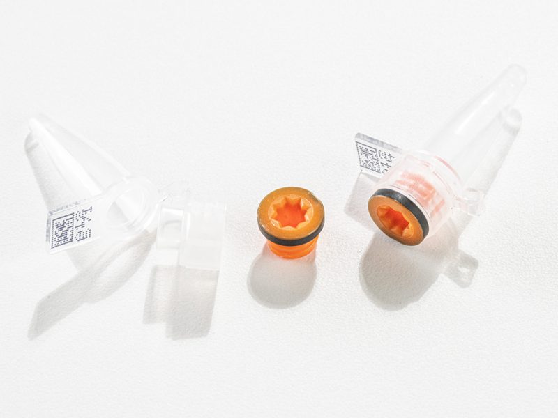 A unique PCR tube featuring a patent pending dual-cap mechanism, 2D datamatrix code as well as a human readable identification, allowing for wide-ranging workflow versatility. Innovative features allow for utilization as a consumable suitable for sample collection/transport that can be directly processed for analysis, ideal for genetic testing workflows.