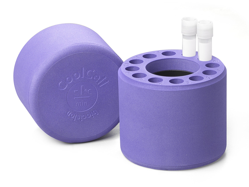 CoolCell Cell Freezing Containers for controlled-rate alcohol-free cell freezing provide a highly reproducible -1℃/minute freezing rate when placed in a -80℃ freezer, with no alcohol or fluids required. The patent-pending Cell Freezing Container technology utilizes a thermo-conductive alloy core and highly-insulative outer material to control the rate of heat removal to provide reproducible cell cryopreservation. The insulative outer housing and thermo-conductive solid state core ensure consistent heat removal to all vials throughout the freezing period.