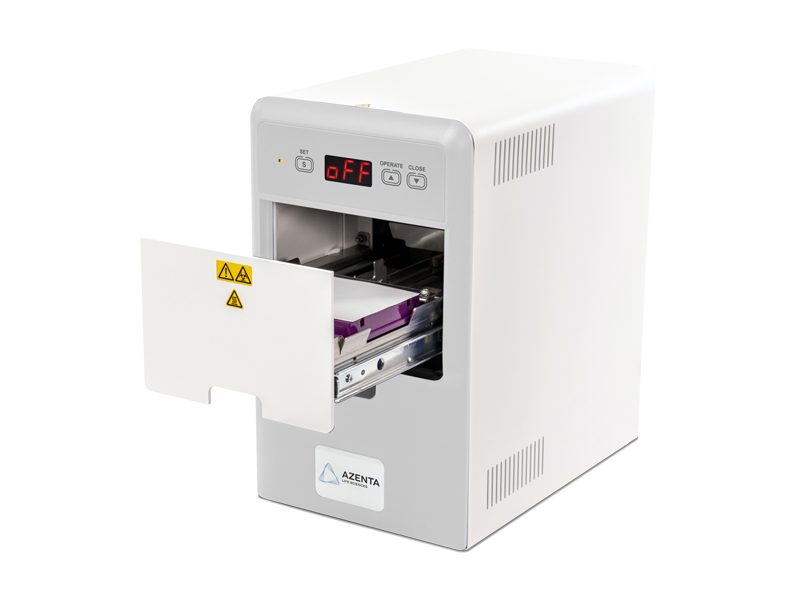 With variable temperature and time settings, sealing conditions are easily optimized to produce a 100% seal, eliminating sample loss. Plate and seal are placed on the holder, the “Operate” button pressed and the drawer automatically closes. The sealing process is controlled by an electric mechanism; this unique feature eliminates operator variation, giving a consistent seal every time and reducing the damage caused to microplates by over-sealing.