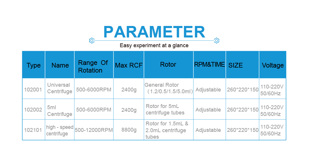 ◆ Potrivit pentru tuburi de centrifugă de 0.2mL / 0.5mL / 1.5mL / 5mL fără a schimba rotorul.