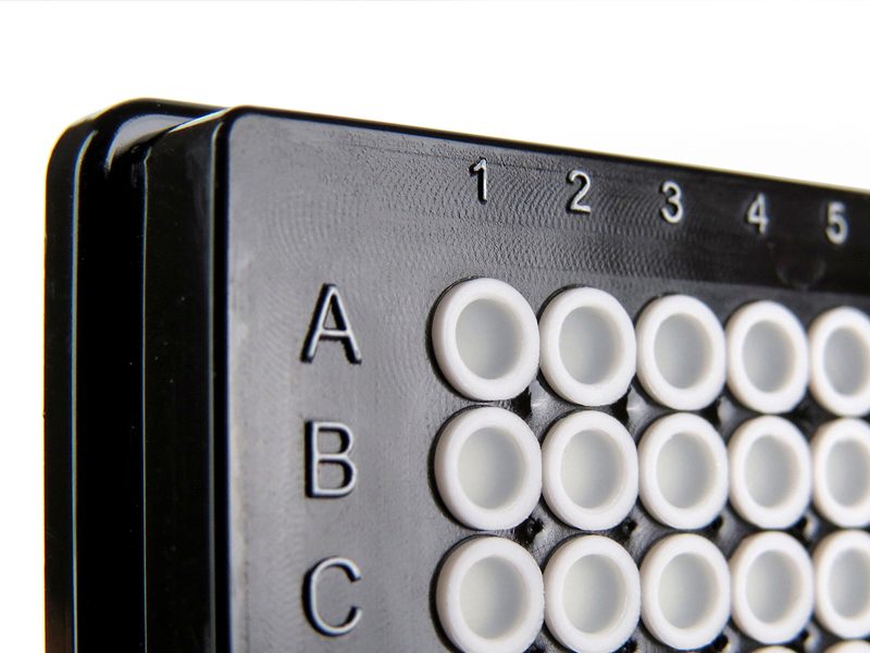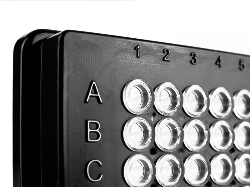 - De asemenea, disponibil ca un cadru negru cu găuri albe (pentru un raport semnal-zgomot optim atunci când se utilizează teste bazate pe fluorescență)