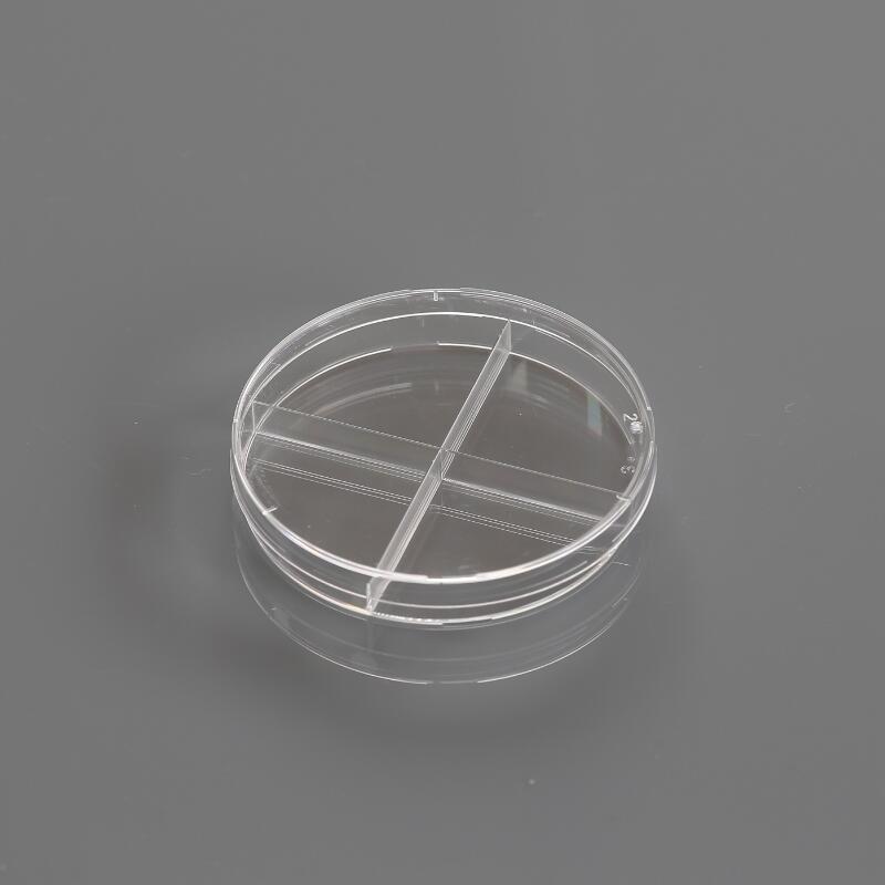 Vas Petri 90mm (4 compartimente) Cu certificare ISO9001&13485, Vas Petri 90mm (4 compartimente) sunt fabricate într-o cameră de curățenie de gradul 100.000 cu materii prime de gradul USP 6. Nest este dedicat să fie cea mai bună alegere pentru consumabile de laborator și medicale.
