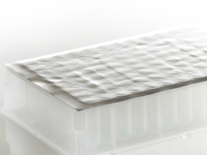Folie de aluminiu adezivă recomandată pentru depozitarea pe termen lung a compușilor (probe care conțin DMSO pot fi depozitate până la 5 ani).