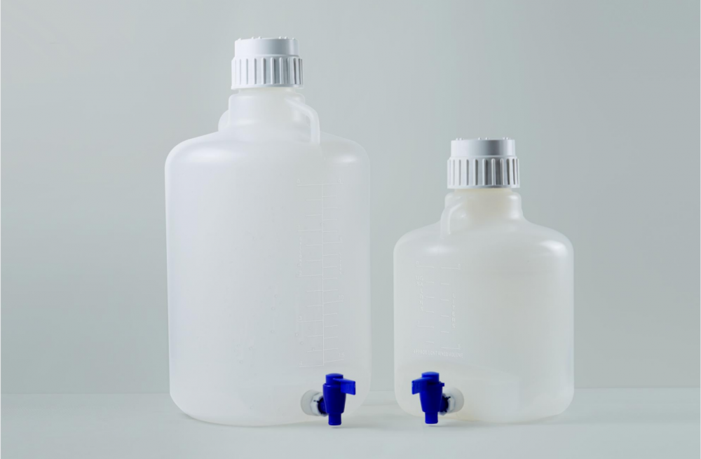 Butoiul, robinetul și capacul cu filet al Carboy sunt fabricate din polipropilenă (PP) și garnitura este realizată din elastomer termoplastic (TPE), toate fiind autoclavabile pentru sterilizare înainte de utilizare pentru a preveni creșterea bacteriilor și altor microorganisme. Este utilizat în principal pentru depozitarea și distribuirea soluțiilor, mediilor de cultură, fiind de asemenea ideal pentru apă sterilă. Butoiul este turnat cu marcaje de scară de 1 galon sau 5 litri pentru identificarea ușoară a nivelurilor de lichid în timpul operării. Performanța de etanșare este asigurată de garnitura TPE și de filetul de la finisaj, care se potrivește bine cu capacul.