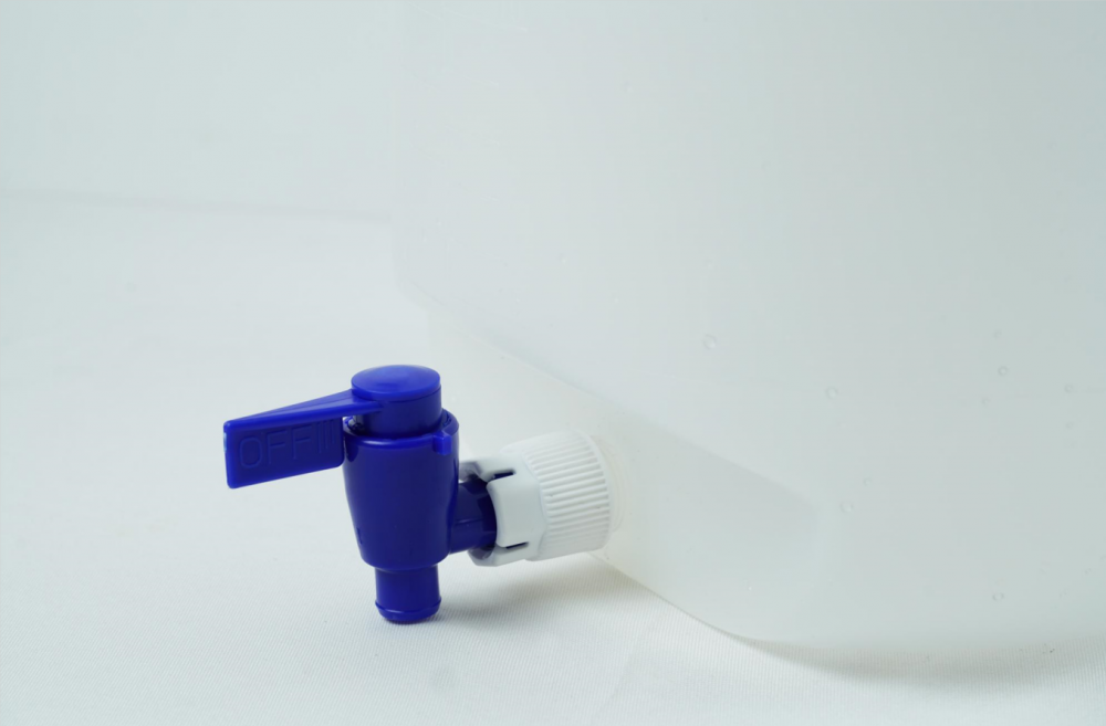 Butoiul, robinetul și capacul cu filet sunt fabricate din polipropilenă (PP) și garnitura este realizată din elastomer termoplastic (TPE), toate fiind autoclavabile pentru sterilizare.