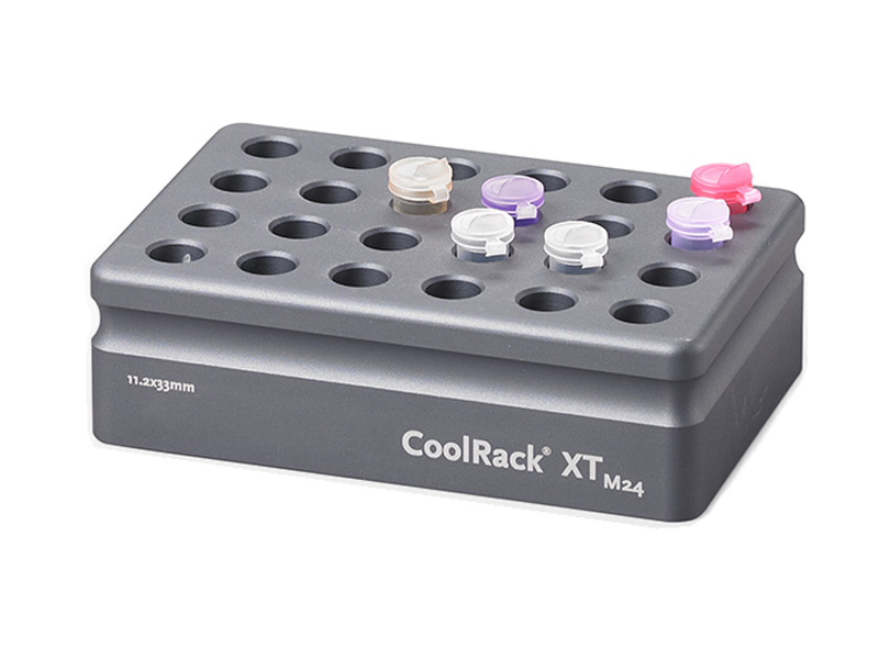 | CoolRack XT M24 Thermoconductive Tube Rack pentru 24 de Tuburi Microcentrifuge Pentru utilizare cu tuburi microfuge de 1,5ml sau 2,0ml, 24 de puțuri cilindrice |