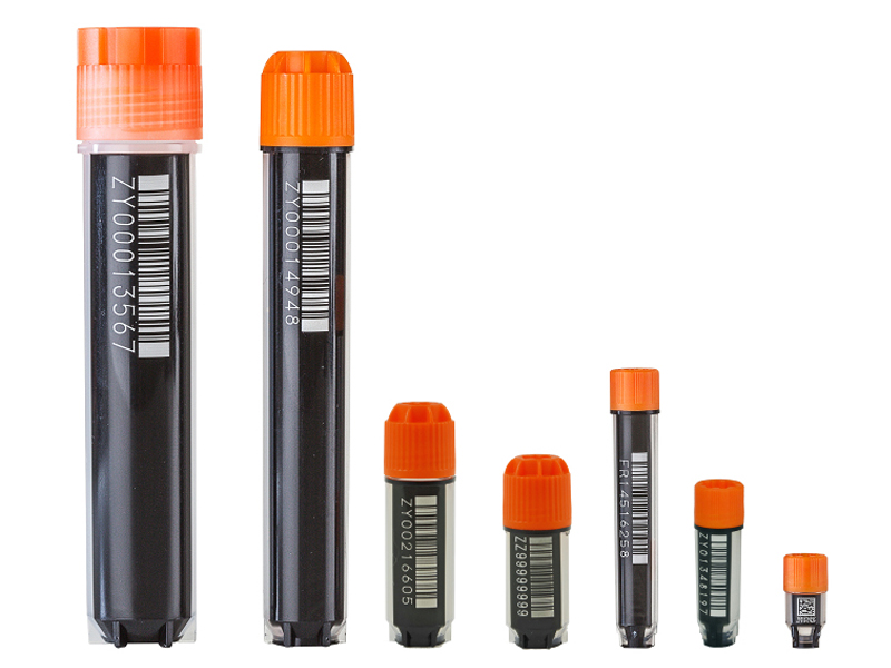 Fiecare tub are un cod 2D permanent gravat cu laser în contrast ridicat pe baza tubului, un cod de bare liniar 1D permanent și un număr lizibil de oameni gravat cu laser în contrast ridicat pe partea laterală a tubului. Toate cele trei coduri sunt identice și procesele de audit garantează că toate cele trei coduri se potrivesc; opțiunea standard de codare 2D este negru pe alb.